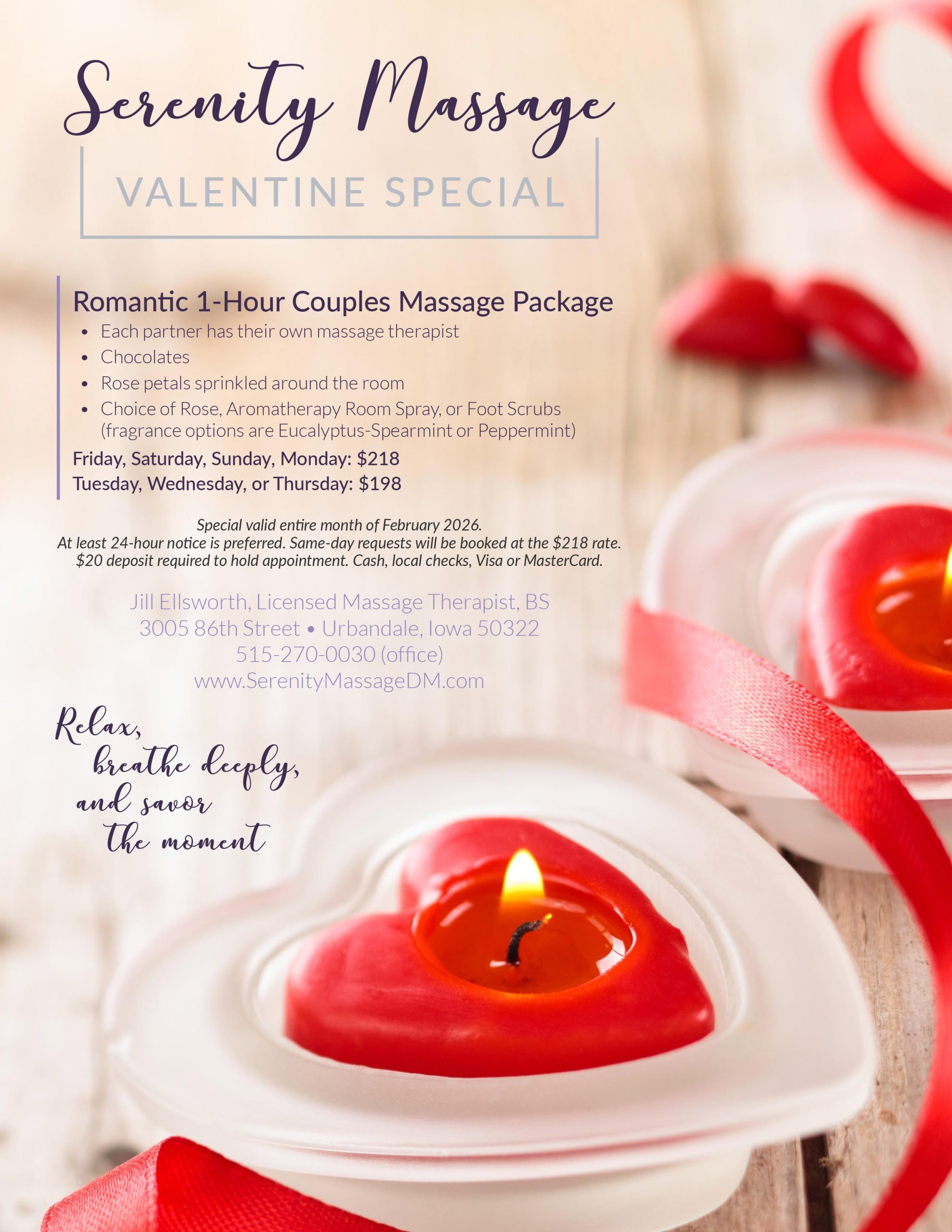 Celebrate Valentine’s month with a couples massage special package – see flyer below!